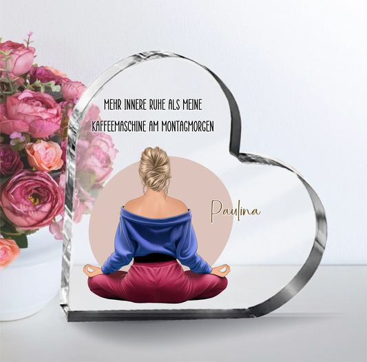 Meditation (Frau/Mann) Herz Glasaufsteller