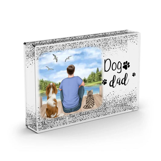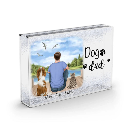 Mann/Frau mit 2 Haustieren (Hund/Katze) - Schneekugel Silber Glitzer