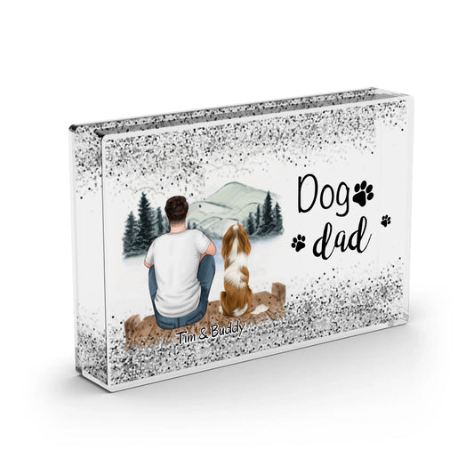 Mann/Frau mit Haustier (Hund/Katze) - Schneekugel Silber Glitzer