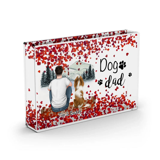 Mann/Frau mit 2 Haustieren (Hund/Katze) - Schneekugel Herz Pailletten