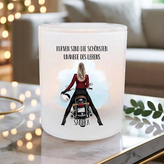 Motorradfahrerin (Frau/Mann) Teelichthalter