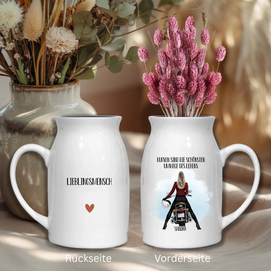 Motorradfahrerin (Frau/Mann) Keramikvase