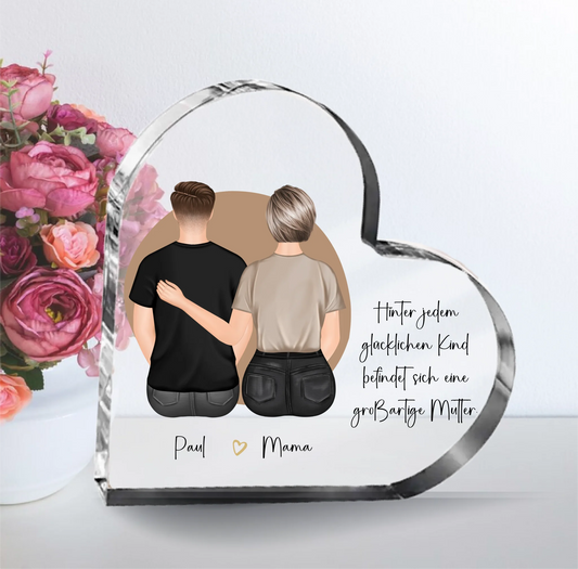 Mutter & 1-2 Söhne Glasaufsteller Herz