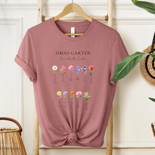 Omas Garten 1-11 Namen mit Geburtsblume T-Shirt