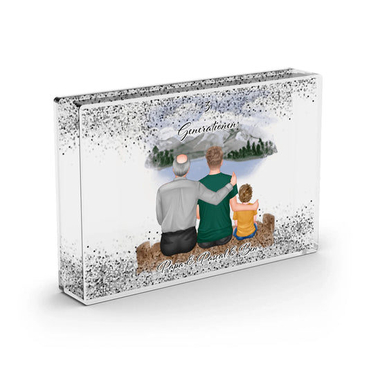 Opa, Papa und Enkel - Schneekugel Silber Glitzer