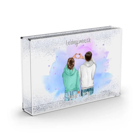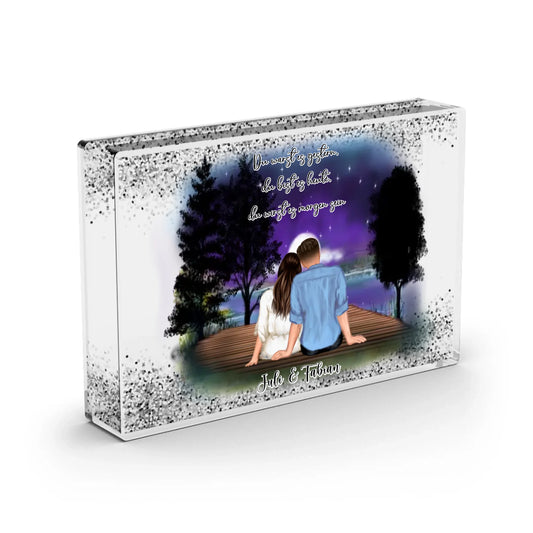 Paar Geschenk - Schneekugel GoldRose Pailletten