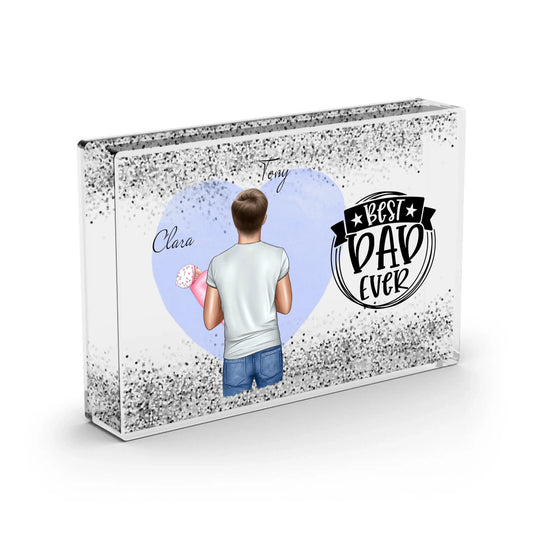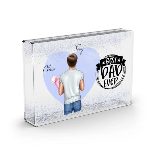 Papa & 1-3 Kinder Winter Schneekugel Silber Glitzer