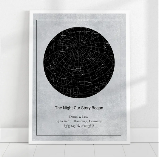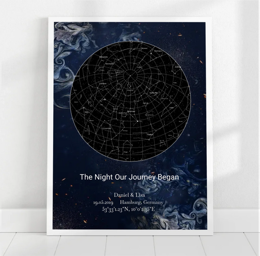 Personalisierte Sternenkarte - Die Nacht in der unsere Reise begann