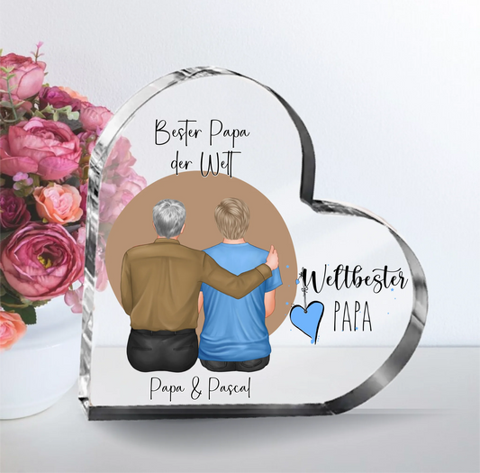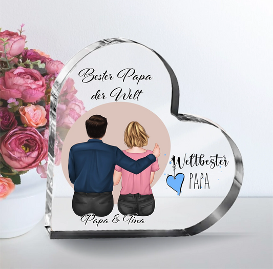 Vater & 1-2 Töchter Schneekugel Herz Pailletten