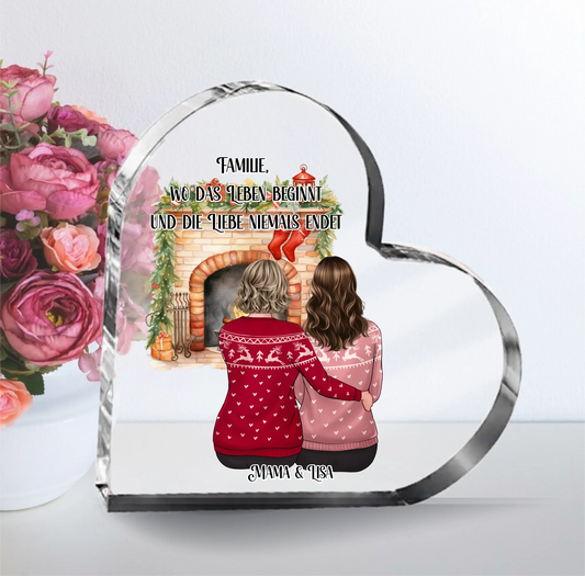 Winter Mama mit 1-3 Kindern Herz Glasaufsteller
