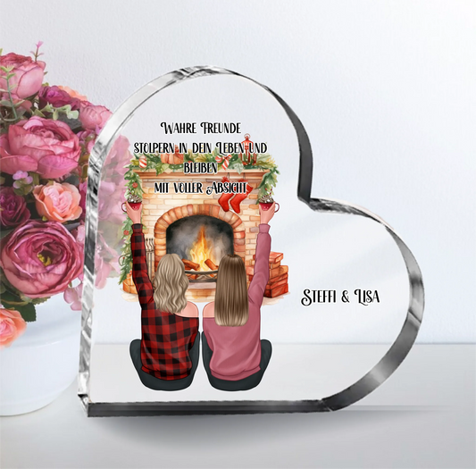 Winter Freundinnen mit Kinder Herz Glasaufsteller