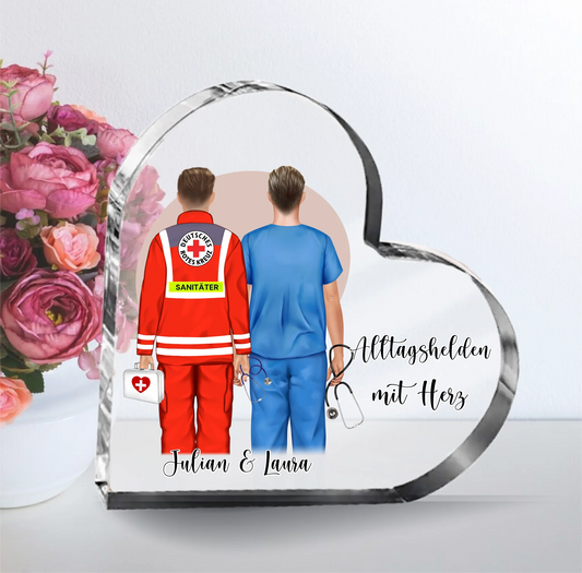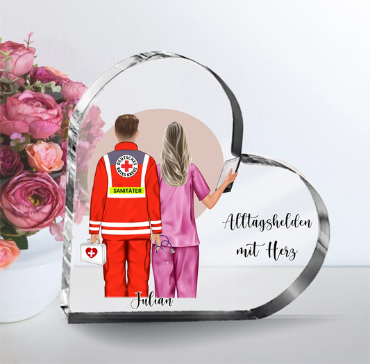 Sanitäter & Krankenschwester Herz Glasaufsteller