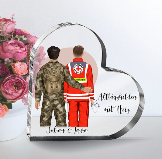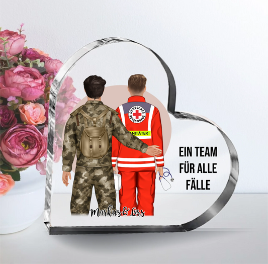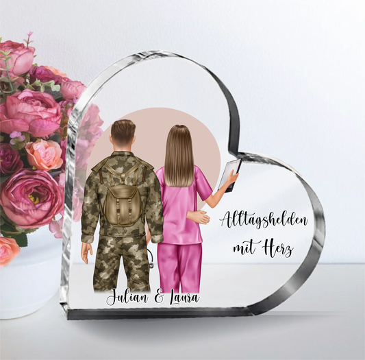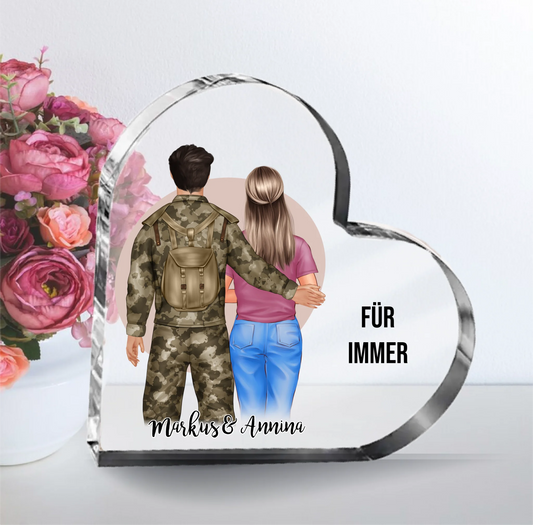 Soldat & Frau (+1-2 Kinder) Glasauftsteller Herz