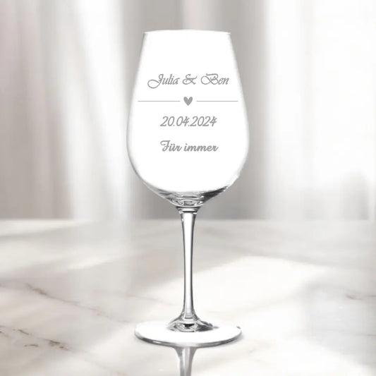 Unvergängliche Liebe – Personalisiertes Leonardo XXL Weinglas mit Namen, Datum & Eheringen