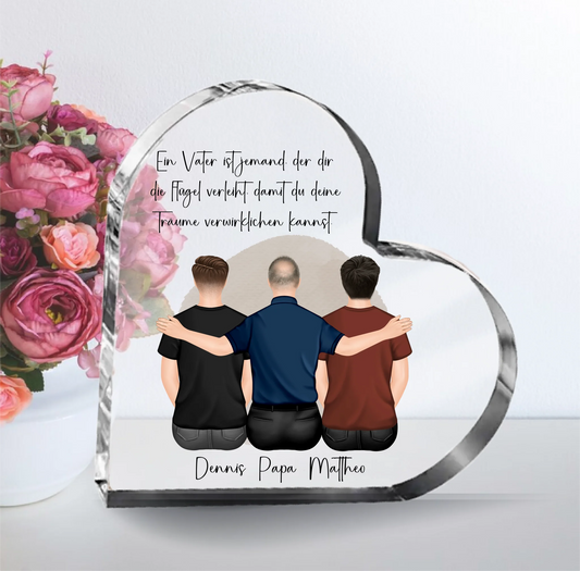 Vater & 1-2 Söhne Glasaufsteller Herz
