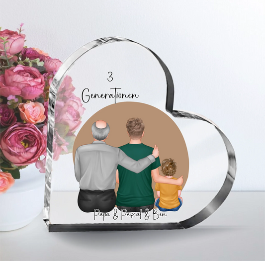 Vater, Sohn & Enkel/in Herz Glasaufsteller