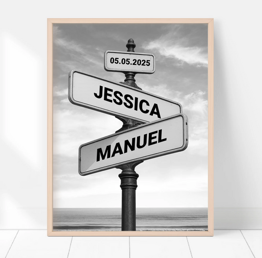 „Liebesschild“ – Personalisiertes Poster oder Leinwand mit Namen & Datum