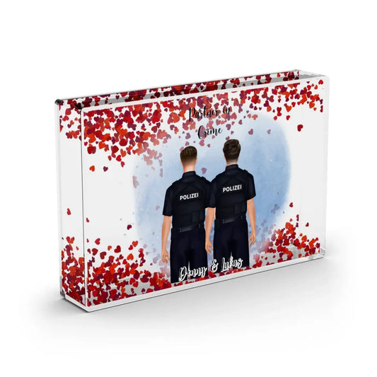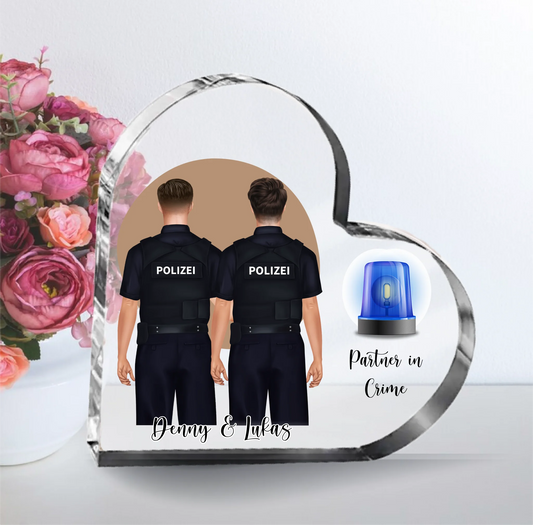2-3 Polizisten - Schneekugel Herz Pailletten