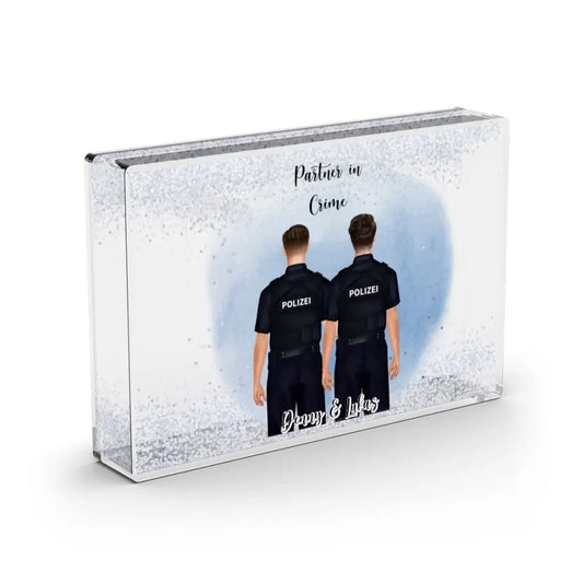 2-3 Polizisten - Schneekugel Silber Glitzer