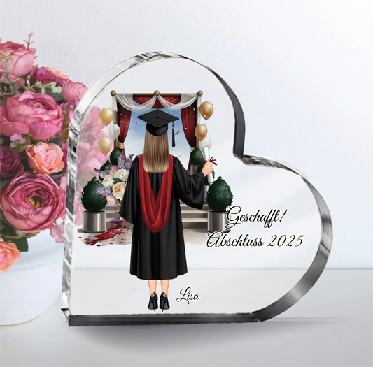 Abschluss (Frau/Mann) Herz Glasaufsteller