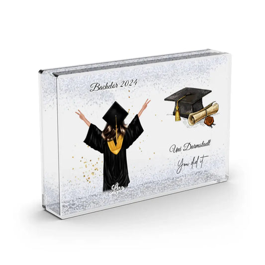 Abschluss (Frau & Mann) - Schneekugel Silber Glitzer