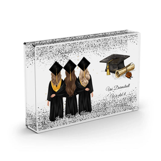 Abschluss 3 Freundinnen - Schneekugel Silber Glitzer