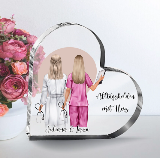 Arzt & Krankenschwester/Pfleger Herz Glasaufsteller