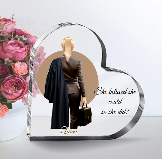 Anwältin (Frau/Mann) Herz Glasaufsteller