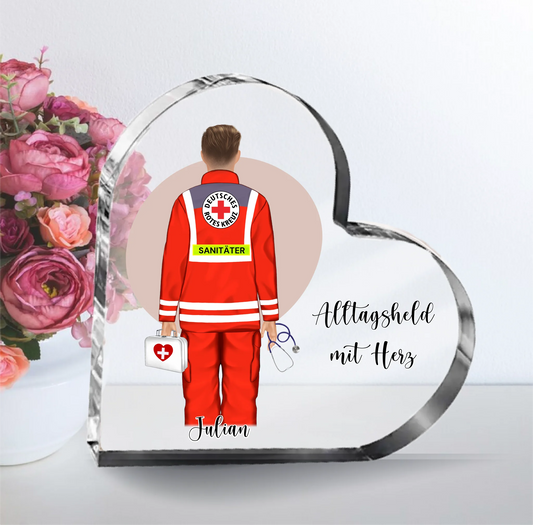 1-2 Sanitäter Herz Glasaufsteller