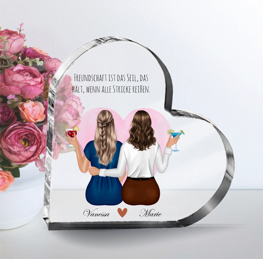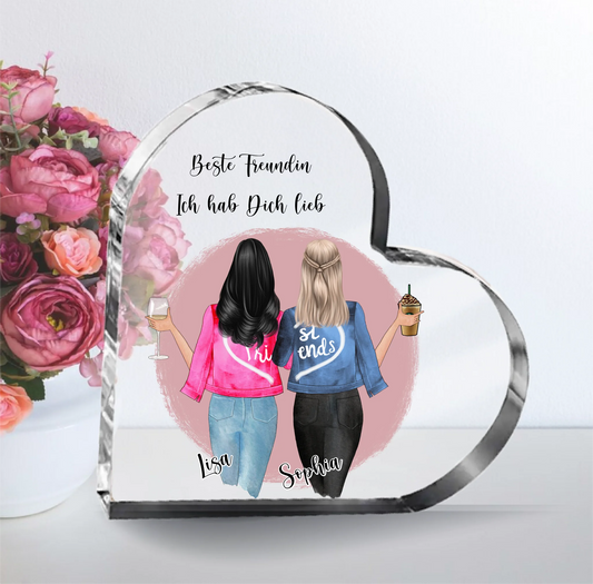 Beste Freundinnen Herz Glasaufsteller