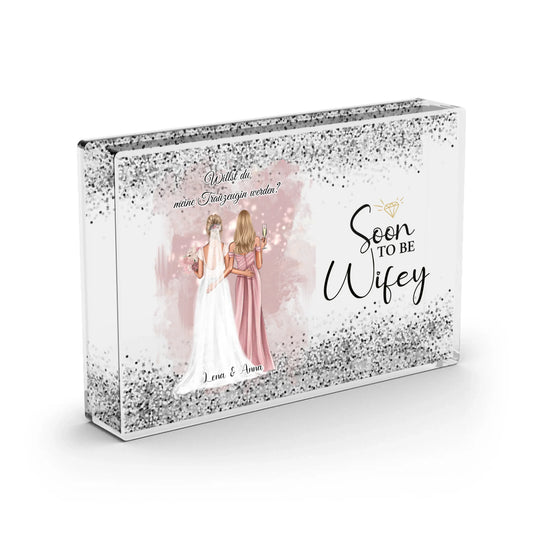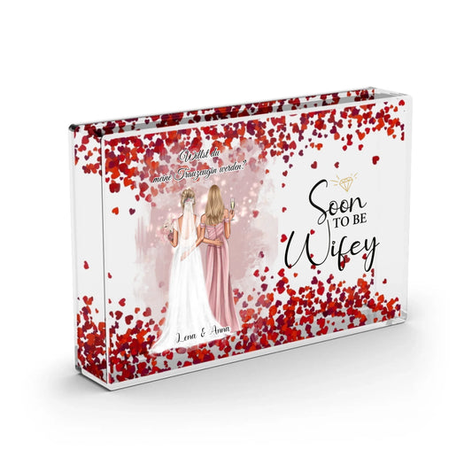 Braut & Trauzeigin Herz Glasaufsteller