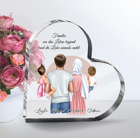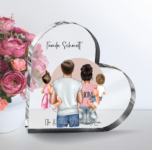 Familie mit 1-2 Kindern Herz Glasaufsteller