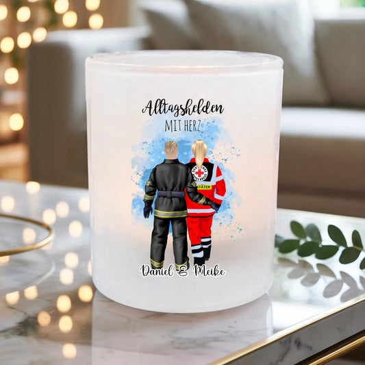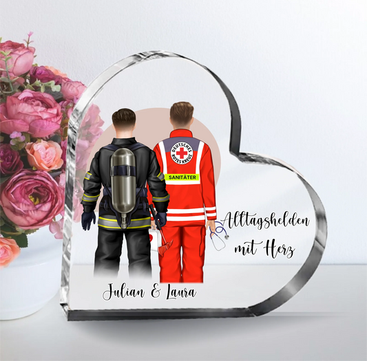 Feuerwehr & Sanitäter Alltagshelden Herz Glasaufsteller