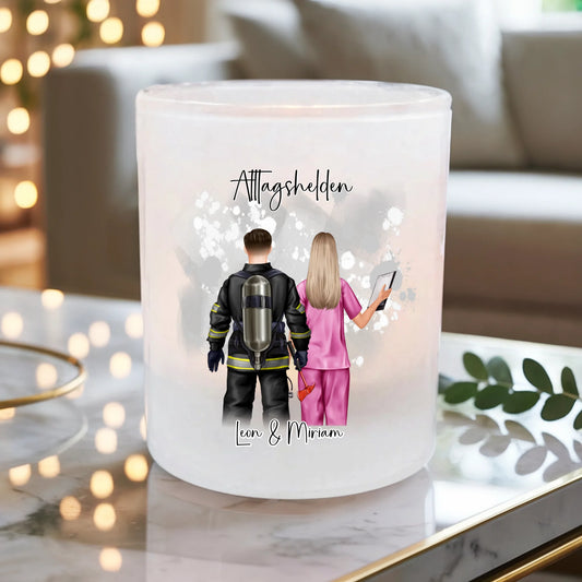 Feuerwehr & Krankenschwester Herz Glasaufsteller