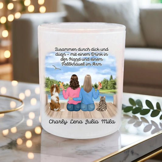 Freundinnen mit Haustier Schneekugel Silber Glitzer