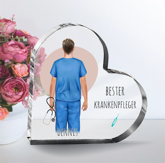 Krankenpfleger Herz Glasaufsteller