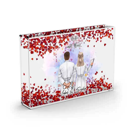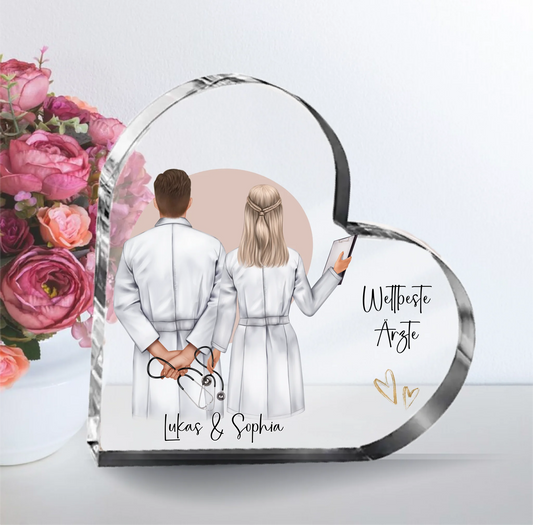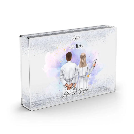 2 Ärzte - Schneekugel GoldRose Pailletten