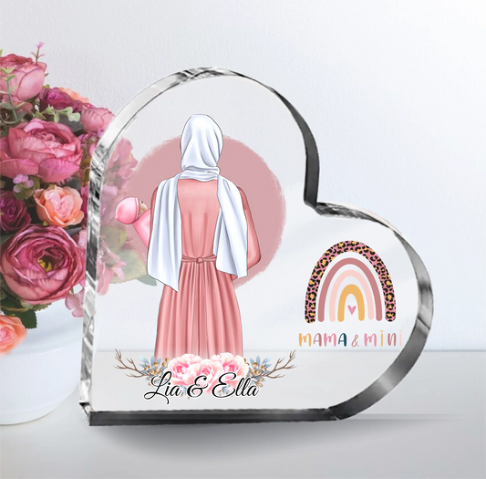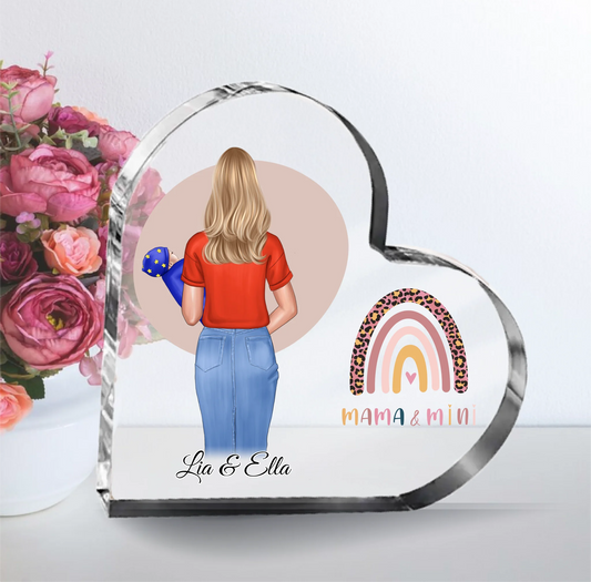 Mama & 2 Kinder - Schneekugel Herz Pailletten