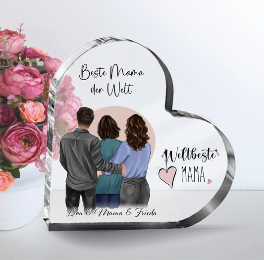 Mama mit Sohn & 1-2 Töchter Herz Glasaufsteller