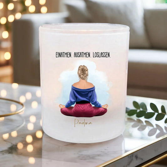 Meditation (Frau/Mann) Herz Glasaufsteller