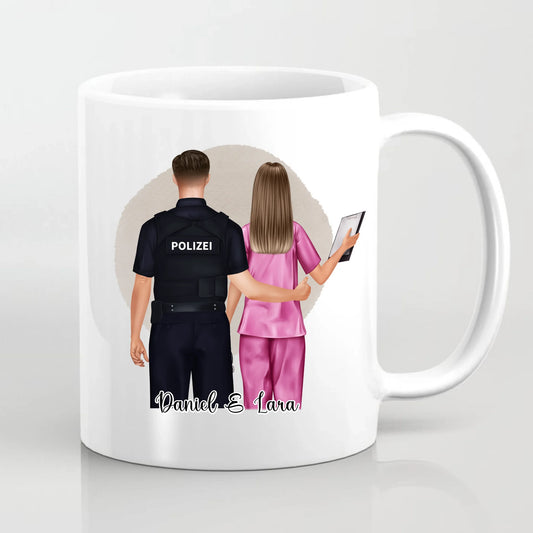 Polizei & Frau + 1-2 Kinder Tasse / Thermobecher