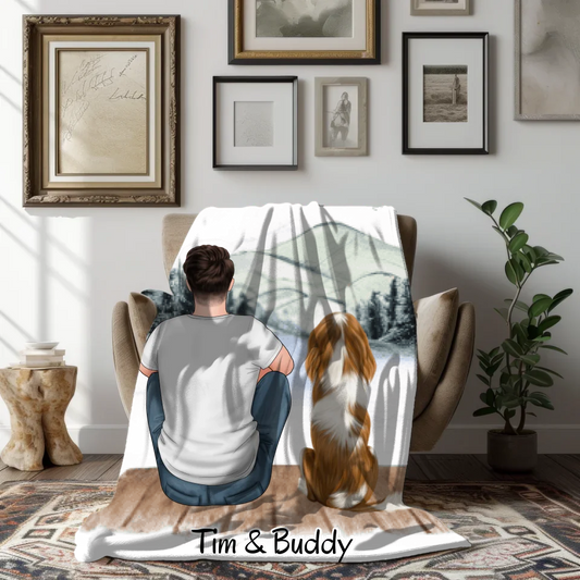 Herrchen mit Hund/Katze Decke Personalisiert (1-2 Personen + 1-2 Haustiere)
