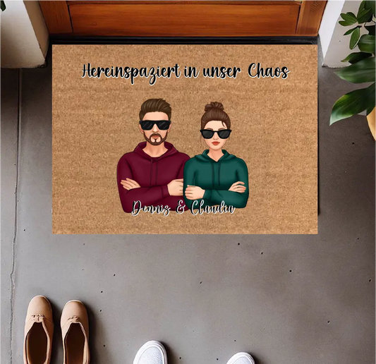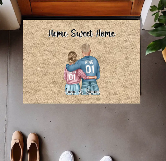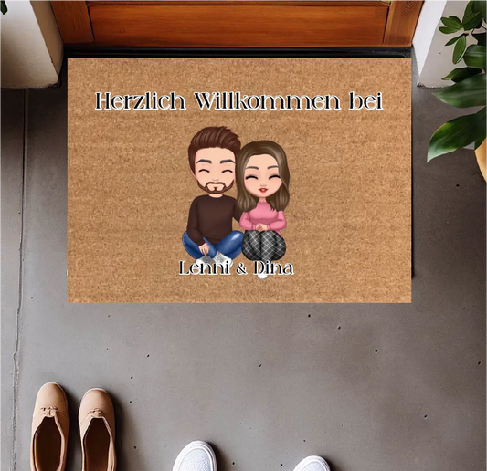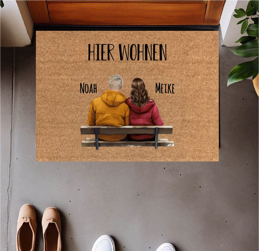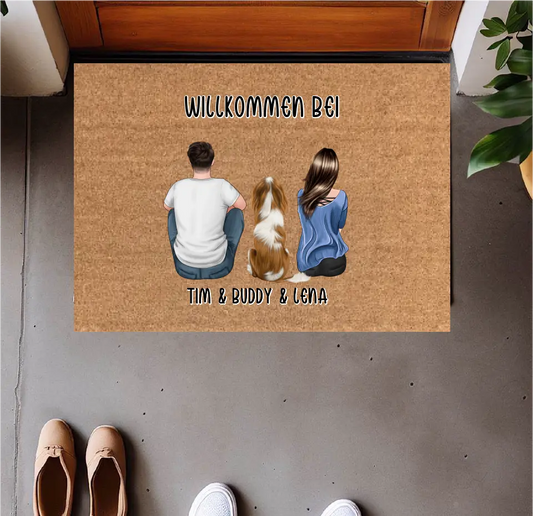 Personalisierte Fußmatte Mann & Frau mit 1-2 Haustieren