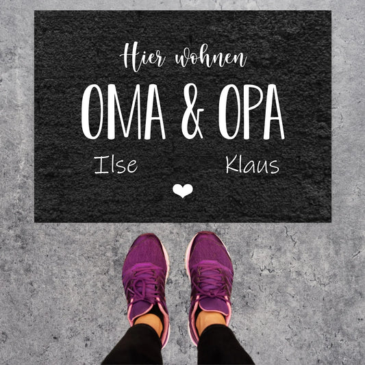 Hier wohnen Oma & Opa - Personalisierte Fußmatte