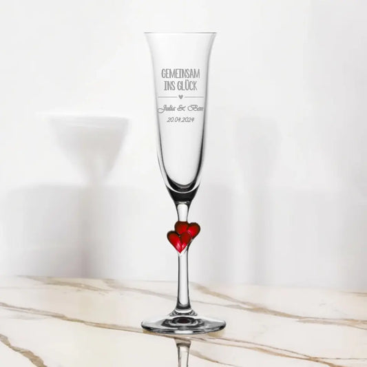 Gemeinsam ins Glück - Personalisierbares Sektglas mit Herzstiel