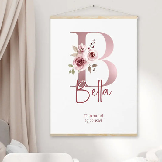 Geburtsposter Jungen & Mädchen - Leinwand mit Holzleiste