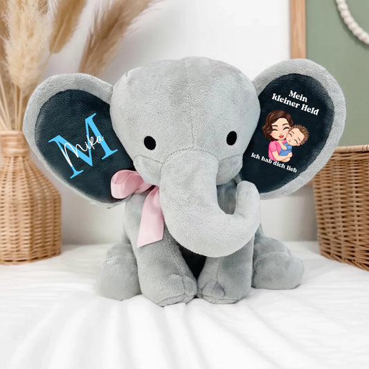 Kuscheltier Elefant mit Name und personalisierten Figuren