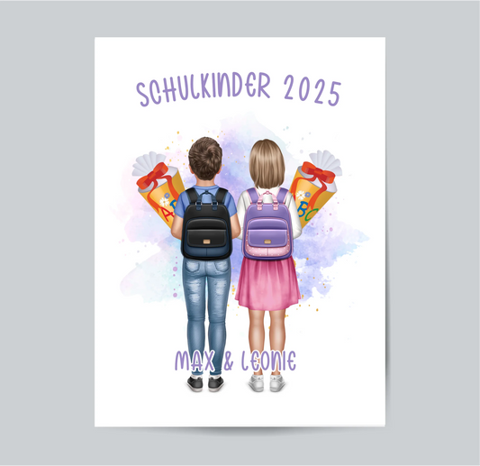 Schulkind Poster 1-2 Kinder für Jungen & Mädchen