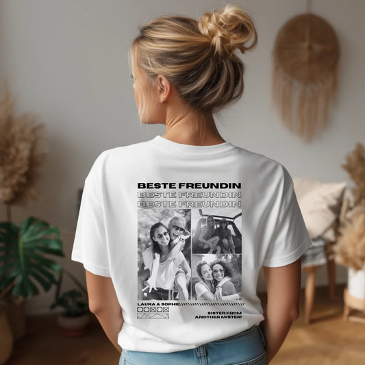Personalisiertes T-Shirt "Beste Freundin" mit Fotos - schwarze Schrift