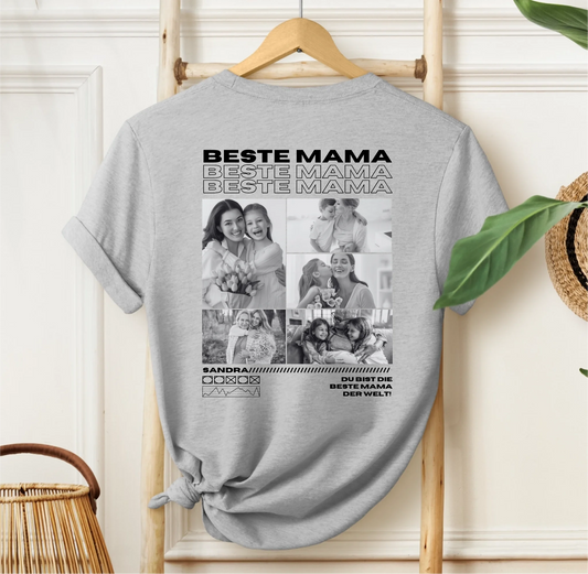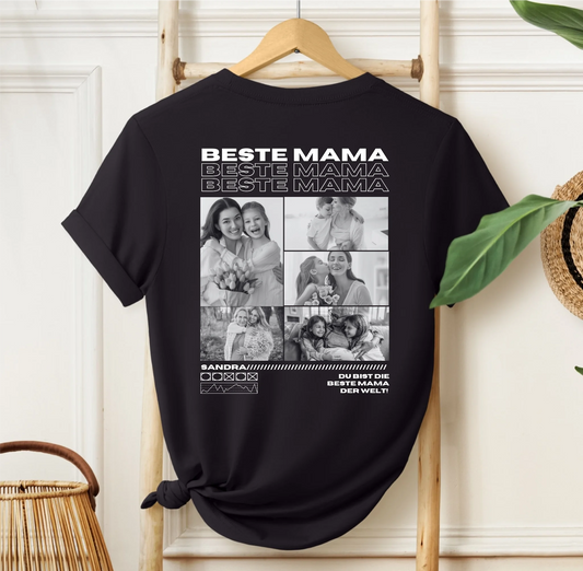 Personalisiertes T-Shirt "Mama" mit Fotos - schwarze Schrift